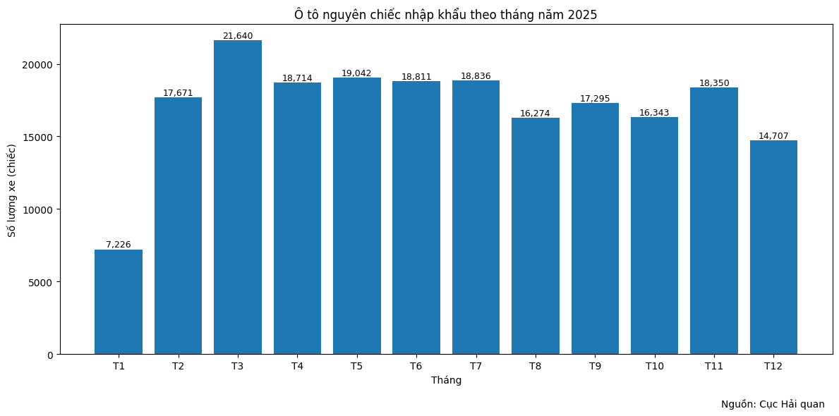 Số liệu từ Cục Hải quan cho thấy, năm 2025 Việt Nam nhập khẩu 205.630 ô tô nguyên chiếc, tăng 18,6% về lượng và 31,1% về trị giá so với năm 2024. Đây là mức cao nhất từ trước đến nay, phản ánh xu hướng gia tăng nhu cầu xe nhập khẩu, song song với xe sản xuất, lắp ráp trong nước.