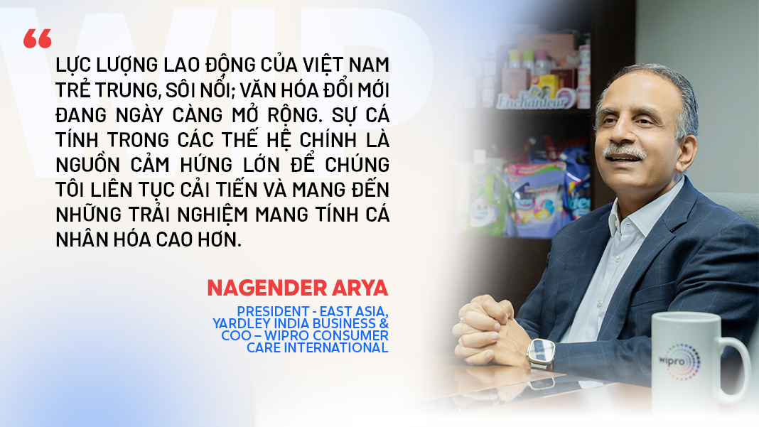 Theo ông Nagender Arya, President - East Asia, Yardley India Business & COO – Wipro Consumer Care International tăng trưởng của doanh nghiệp tại Việt Nam được xây dựng dựa trên kỷ luật vận hành và tầm nhìn đầu tư dài hạn. Thay vì chỉ tận dụng hệ thống phân phối sẵn có, chiến lược sau M&A chuyển mạnh sang nội địa hóa sâu: điều chỉnh công thức và hương liệu cho phù hợp khí hậu, thói quen sử dụng; cải tiến bao bì theo xu hướng thẩm mỹ mới; và phát triển đội ngũ quản lý bản địa am hiểu thị trường.