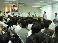 | Nhà đầu tư đến nghe Tổng giám đốc ACB Lý Xuân Hải nói chuyện vào ngày 25-2 - Ảnh: T.Triều |