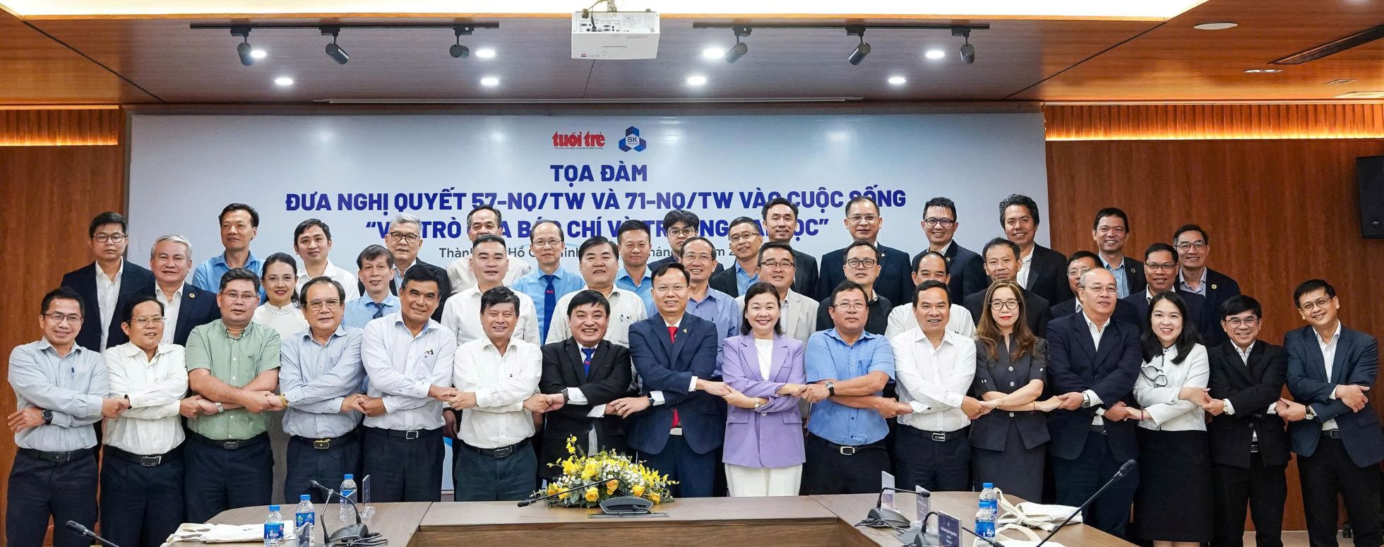 Tọa đàm do Trường đại học Bách khoa phối hợp với báo Tuổi Trẻ tổ chức chiều 7-1 xoay quanh chủ đề "Đưa Nghị quyết 57 và Nghị quyết 71 vào cuộc sống: Vai trò của báo chí và trường đại học". Buổi tọa đàm có sự tham dự của lãnh đạo, tổng biên tập nhiều cơ quan báo chí trung ương và TPHCM, cùng ban giám hiệu và các nhà khoa học của nhà trường.