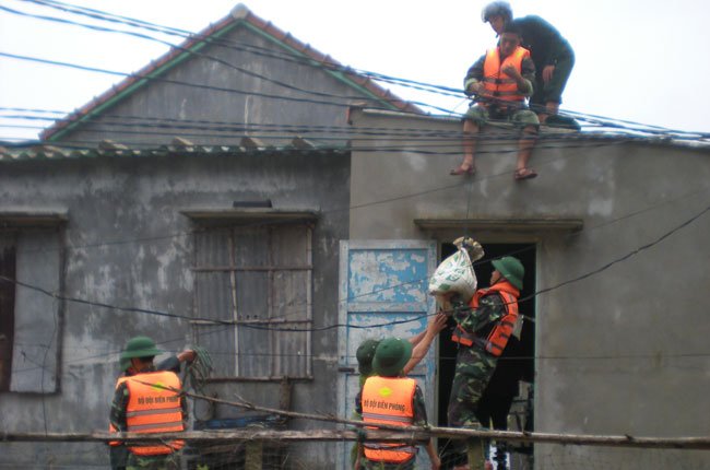Bộ đội giúp dân chống nhà tránh bão - Ảnh: Thạnh Lộc |