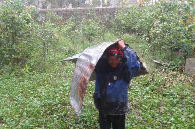 Trong khi đó, người dân ở huyện Lệ Thủy, tỉnh Quảng Bình đang phải chồng chắn nhà cửa để hạn chế thiệt hại do bão số 11 - Ảnh: Văn Đức |