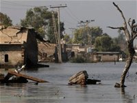| Một ngôi làng tại Pakistan bị lũ lụt phá hủy. Ảnh: TL |