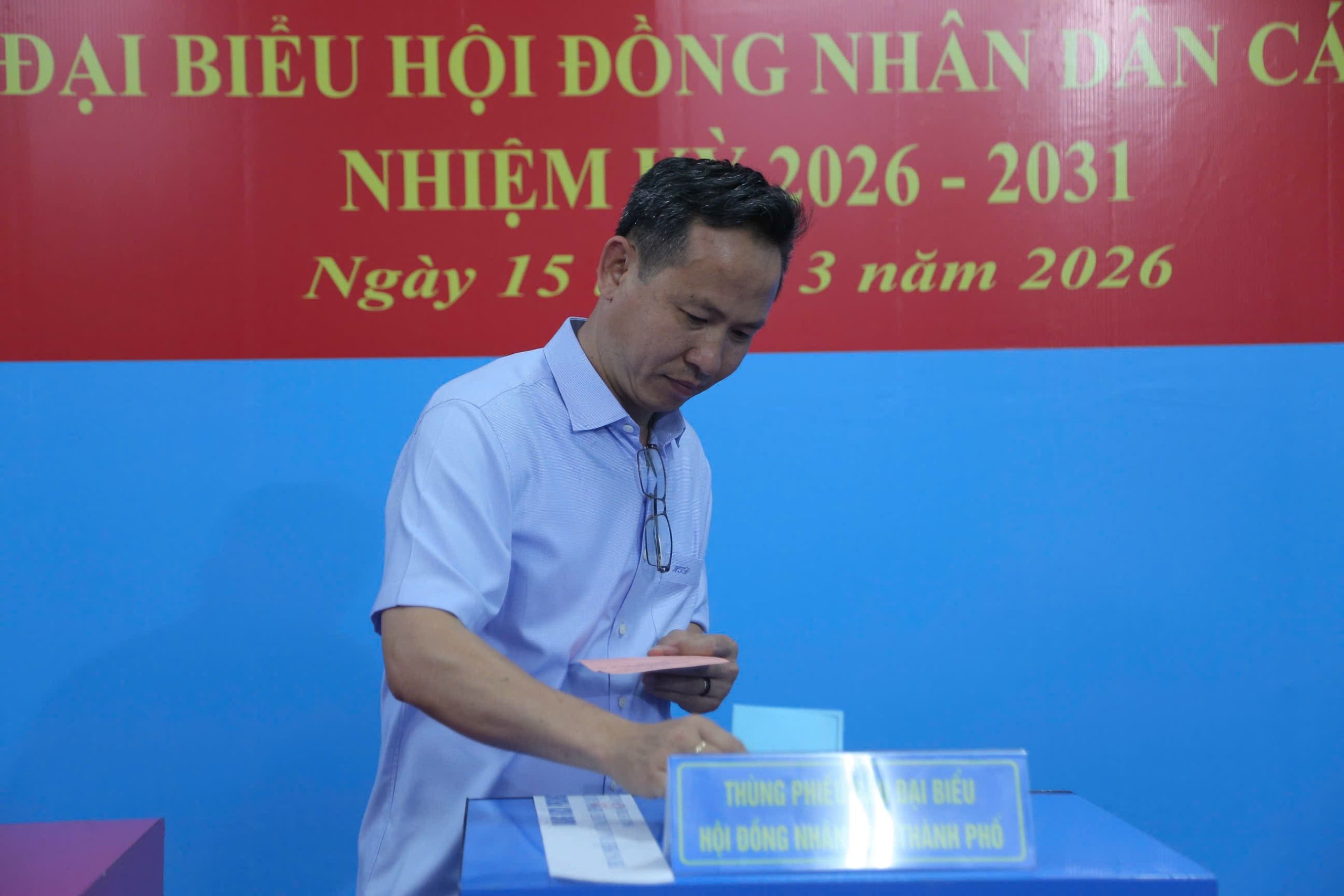 - Từ sáng sớm 15-3, lãnh đạo TPHCM cùng cử tri đến điểm bầu cử