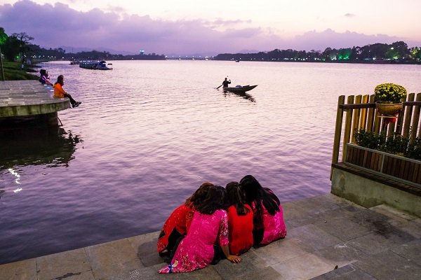 | Cảnh chiều buông trên sông Hương nhìn từ cây cầu. |