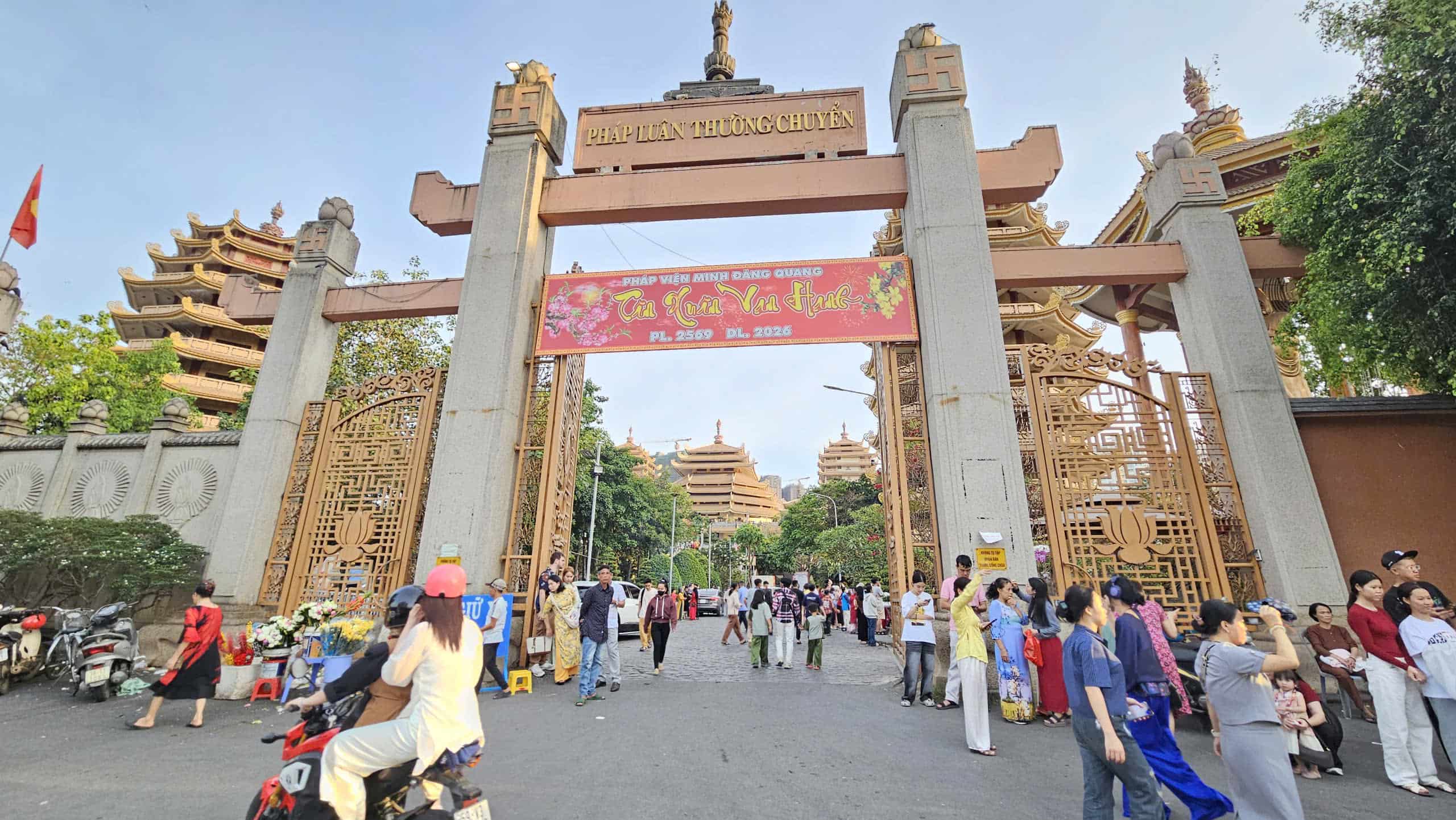 (KTSG Online) - Chiều ngày 18-2 (tức mùng 2 Tết), tại TPHCM, nhiều ngôi chùa lớn như chùa Vĩnh Nghiêm (phường Xuân Hoà), chùa Phước Hải (phường Sài Gòn), Pháp viện Minh Đăng Quang (phường Bình Trưng)… ghi nhận đông đảo người dân và du khách đến viếng, cầu bình an.