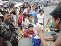 | Tình hình thiếu lương thực ở Philippines căng thẳng đến nỗi chính phủ phải cử quân đội bảo vệ các điểm bán gạo cho người lớn. |