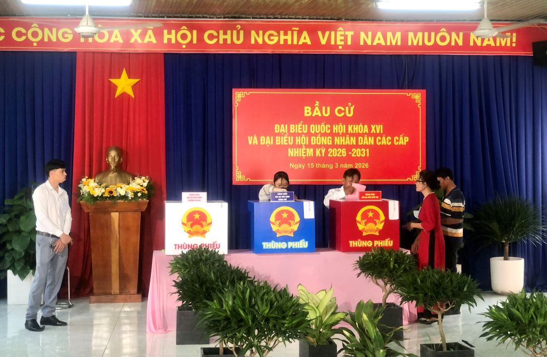 Ngày 15-3, tại điểm bỏ phiếu số 26, khu phố Phú Thuận, phường Phú An (TPHCM), nhiều lãnh đạo và cử tri đã đến thực hiện quyền và nghĩa vụ công dân trong cuộc bầu cử đại biểu Quốc hội khóa XVI và đại biểu HĐND các cấp TPHCM nhiệm kỳ 2026–2031.