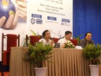 | Các chuyên gia trả lời câu hỏi của nhà đầu tư trong hội thảo chiều ngày 10-1-2009. Ảnh: Thanh Thương |