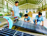 | Chế tạo máy nước nóng sử dụng năng lượng mặt trời tại một doanh nghiệp ở TPHCM. Ảnh: Lê Toàn. |