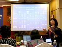 | Tiến sĩ Nguyễn Thị Cành trình bày về kịch bản tăng trưởng kinh tế của Việt Nam tại buổi hội thảo tại TPHCM ngày 12-9 - Ảnh: Mộng Bình |