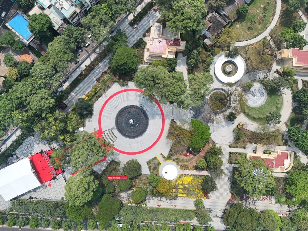 (KTSG Online) - Công viên số 1 Lý Thái Tổ tại phường Vườn Lài, TPHCM được trang hoàng rực rỡ với hoa xuân, tiểu cảnh đón người dân dịp Tết. Điểm nhấn của không gian là biểu trưng hình giọt nước đặt giữa hồ trung tâm, mang ý nghĩa tưởng niệm sâu sắc.