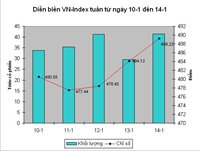 Như vậy, đóng cửa tuần này, chỉ số VN-Index tăng nhẹ 7,36 điểm (1,53%) so với cuối tuần trước. Trong khi đó, giao dịch trung bình đã tăng từ mức 32,75 triệu cổ phiếu của mỗi phiên trong tuần trước, lên mức 36,3 triệu cổ phiếu trong tuần qua.