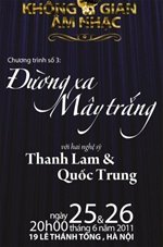 (TBKTSG – Online) - Chương trình không gian âm nhạc “Đường xa mây trắng” của Quốc Trung và Thanh Lam sẽ diễn ra vào lúc 19 giờ 30 ngày 25 và 26-6 tại khán phòng Ngụy Như Kon Tum (19 Lê Thánh Tông, Hà Nội).