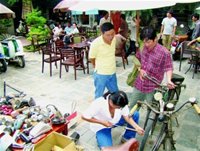 (TBKTSG) - Đồ cũ lâu năm chán sử dụng có thể mang ra chợ ký gửi, uống cà phê - nghe nhạc kết hợp đi dạo xem mọi người buôn bán, muốn lái thử xe gắn máy cổ chạy vòng vòng quanh chợ... hãy đến chợ Sài Gòn ve chai trong khuôn viên cà phê sân vườn Cao Minh, quận Bình Thạnh.