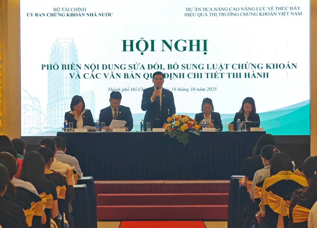 “Hội nghị phổ biến nội dung sửa đổi, bổ sung Luật Chứng khoán và các văn bản quy định chi tiết thi hành” diễn ra tại ba khu vực, nằm trong khuôn khổ dự án “Nâng cao năng lực về thúc đẩy hiệu quả thị trường chứng khoán Việt Nam” do Cơ quan Hợp tác Quốc tế Nhật Bản (JICA) tài trợ, hợp tác. Mục tiêu nhằm cập nhật, phổ biến quy định pháp luật mới ban hành về chứng khoán và thị trường chứng khoán, bảo đảm tuân thủ, áp dụng hiệu quả trong thực tiễn hoạt động.