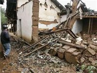| Một căn nhà đổ nát sau cơn động đất -Ảnh: Reuters |