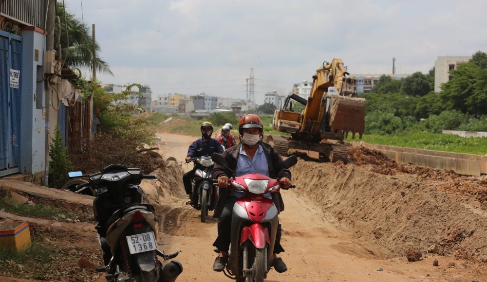 Vật liệu tập kết ngổn ngang khiến người dân sống xung quanh dự án bức xúc vì việc đi lại bị cản trở.Theo Ban Quản lý dự án đầu tư xây dựng hạ tầng đô thị TPHCM (chủ đầu tư), tính đến tháng 7-2025, dự án mới hoàn thành hơn 52,5% tổng khối lượng, chậm tiến độ do năng lực thi công yếu kém của một số nhà thầu. Mặc dù đã nhiều lần nhắc nhở và xử phạt, tiến độ thi công vẫn chưa được cải thiện.