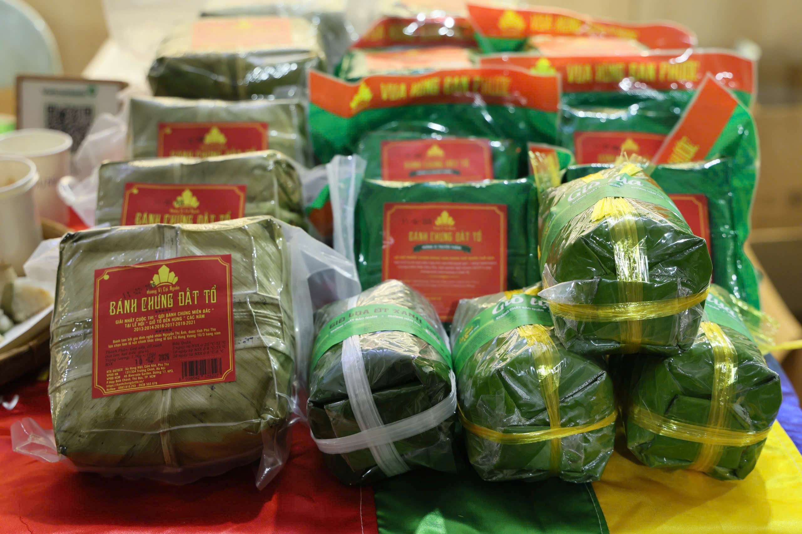 Bánh chưng Đất Tổ được gói vuông vức, dẻo thơm, gìn giữ hương vị truyền thống của mâm cỗ Tết Việt.