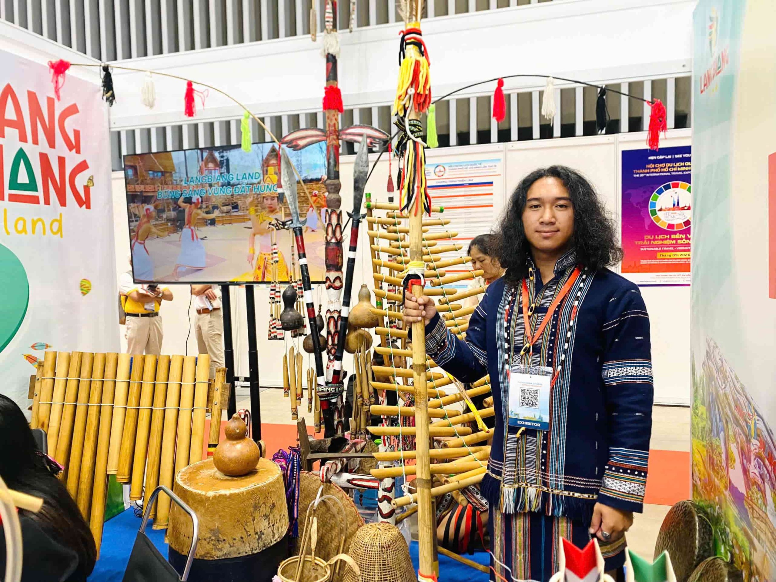 Du khách được tham gia trải nghiệm các hoạt động văn hóa địa phương như uống rượu cần, chơi nhạc cụ dân tộc tại một số gian hàng ở Hội chợ du lịch quốc tế TPHCM 2025. Ảnh: Minh Thảo
