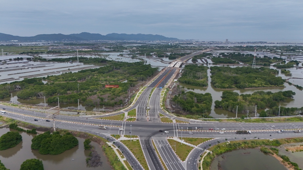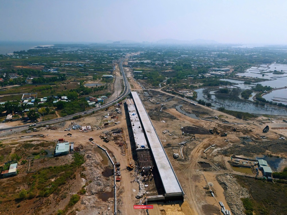 Dự án có tổng mức đầu tư hơn 7.000 tỉ đồng, được khởi công từ tháng 6-2023, với quy mô 6-8 làn xe và vận tốc thiết kế 80km/h.Tuyến đường có điểm đầu tại nút giao với đường 991B và điểm cuối tại nút giao quốc lộ 55 thuộc địa phận Vũng Tàu cũ (nay là TPHCM), từ đó kết nối tiếp với tuyến ven biển đến địa phận Phan Thiết cũ (nay là tỉnh Lâm Đồng). Trong ảnh là nút giao đường Trường Sa với quốc lộ 51 đoạn qua Vũng Tàu.Tại khu vực giao với tuyến nối cao tốc Biên Hòa – Vũng Tàu, thiết bị và nhân lực được huy động cao, hiện nhà thầu tập trung hoàn thiện phần mặt cầu.Cầu Cửa Lấp 2 có chiều dài 721m, rộng 12,5m, nối phường Vũng Tàu và xã Long Đất được đầu tư xây mới song song với cầu hiện hữu đã đưa vào sử dụng.Đoạn qua trung tâm xã Long Hải đưa vào khai thác, hệ thống biển báo, chiếu sáng và vỉa hè được thi công hoàn chỉnh.