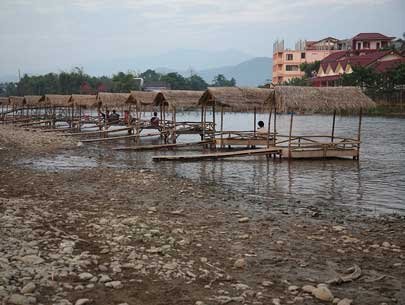 Hôm sau, tôi thuê xe đạp (10.000 kip/ngày) đi tham quan Savannakhet. Buổi chiều trên con đường dọc theo sông Mê Kông có nhiều quán lẩu, người ăn ngồi theo kiểu Nhật, trông rất đẹp và khá hay nhưng tôi chưa ăn thử bởi vì sợ một mình ăn không hết một cái lẩu (đi bụi một mình bất tiện như thế ấy).