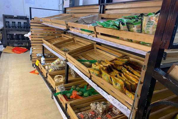 Kệ rau tại một cửa hàng tiện lợi tại khu đô thị An Hưng.