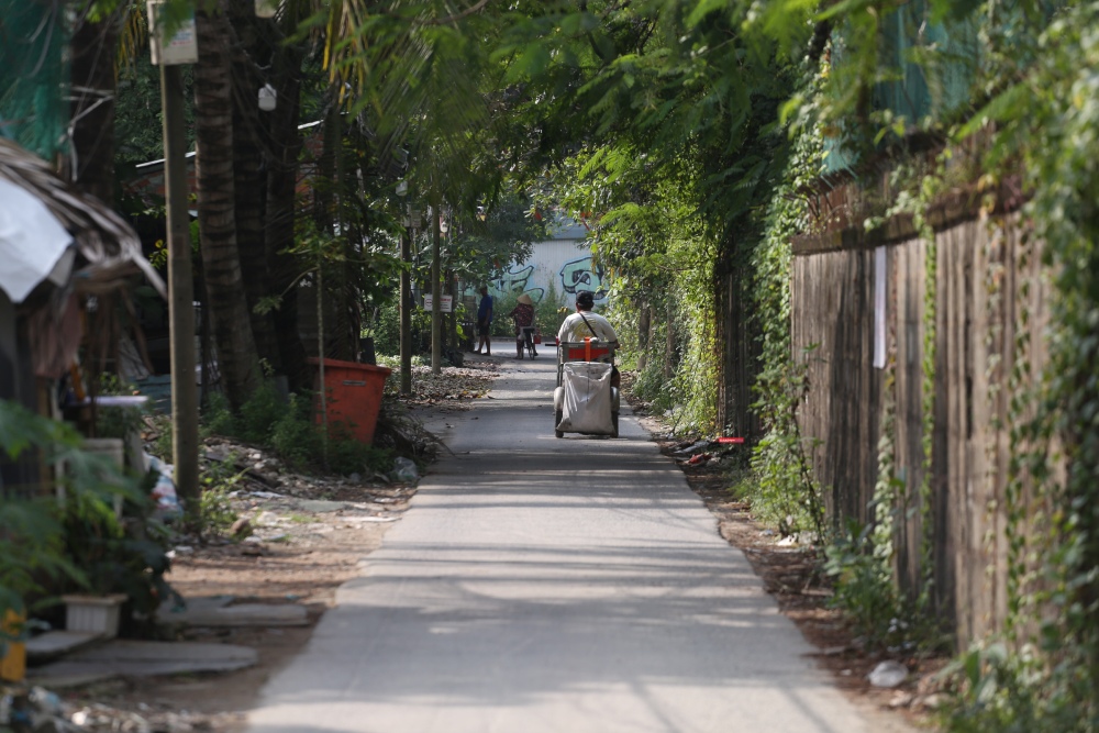 Giữa quy hoạch hàng trăm hecta, nhiều đoạn đường vẫn chỉ là những con đường bê tông nhỏ hẹp.Rác thải sinh hoạt, phế liệu xây dựng đã và đang gây ô nhiễm, mất mỹ quan bên trong các khu vực.