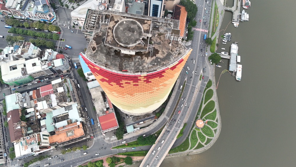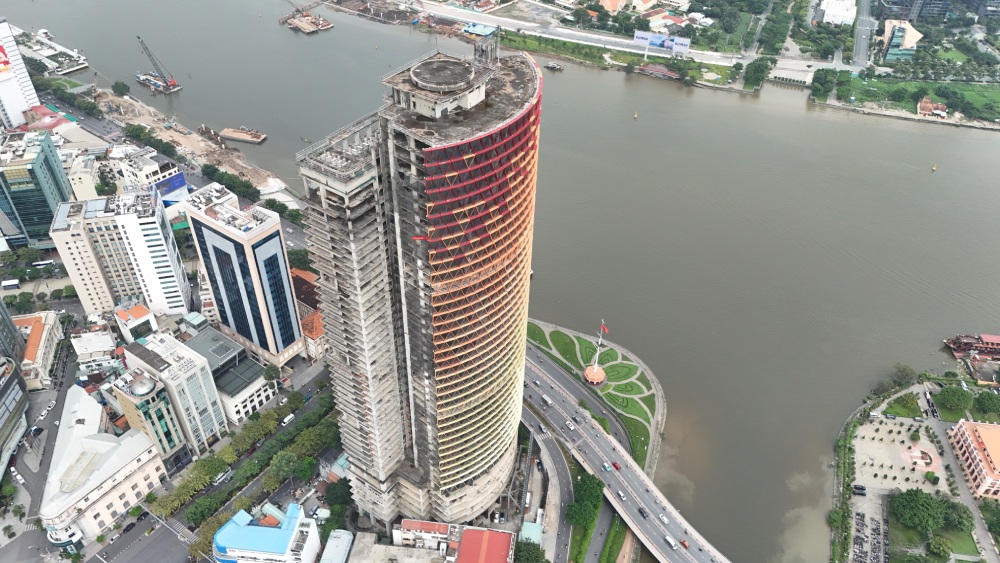 Tuy nhiên, phía đường Hàm Nghi – Tôn Đức Thắng thì vẫn trống trơn, lộ ra khối bê tông. Các tầng trên cùng của tòa nhà đã xuống cấp sau khi bỏ hoang hơn chục năm nay.Tòa nhà được thiết kế lấy cảm hứng từ con rồng trong truyền thuyết, từng lớp kính pha trộn màu sắc ghép lại tạo hiệu ứng vảy rồng.Sau nhiều lần nỗ lực hồi sinh thất bại và hơn 10 năm nằm bất động, dự án Saigon One Tower được thông tin sẽ được tái khởi động, mang theo hy vọng trở thành một công trình điểm nhấn giữa trung tâm TPHCM.