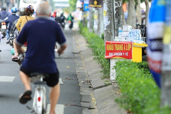 Ghi nhận của phóng viên tại đường quang Trung, quận Gò Vấp chỉ một đoạn đường từ chợ Hạnh Thông Tây cho tới đường Phan Huy Ích có ít nhất sáu điểm bán khẩu trang y tế trên vỉa hè. Chiều tan tầm ngày 31-7 nhiều người đi làm về rất nhiều người tấp vào lề đường để mua khẩu trang.