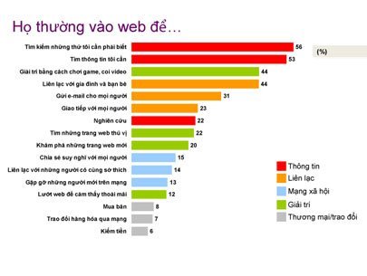 Mục đích truy cập Internet của người Việt Nam (tại TPHCM, Hà Nội, Đà Nẵng và Cần Thơ)