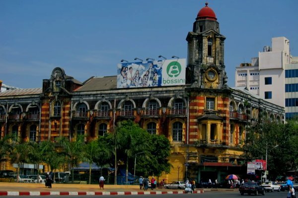 | Một tòa nhà cổ xưa giữa trung tâm Yangon. |