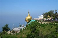 | Hòn Đá Thiêng (Golden Rock) trên núi Kyaiktiyo ở Kimpun. Ảnh: Quỳnh Dung |
