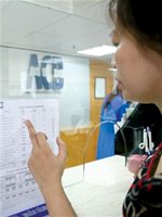 | Khách hàng đang xem bảng lãi suất ở ACB. |