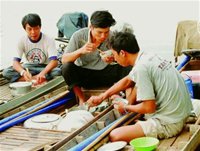 “Nói về cái nghề này thì tổn sức lắm. Phải thức thâu đêm mà ngày về ngủ chẳng được bao nhiêu thì lại đến giờ đi soi tiếp. Cực vậy chứ soi bữa có, bữa không, còn tùy thuộc vào trời. Lang bạt kỳ hồ, tha phương khắp tứ xứ nên chẳng ở nhà được mấy hôm” - anh Nguyễn Thanh Hải (37 tuổi) quê ở cầu Kinh Quýt , xã Tân Tiến, huyện Tri Tôn, tỉnh An Giang, vừa nuốt vội đũa cơm đạm bạc vừa tâm sự.
