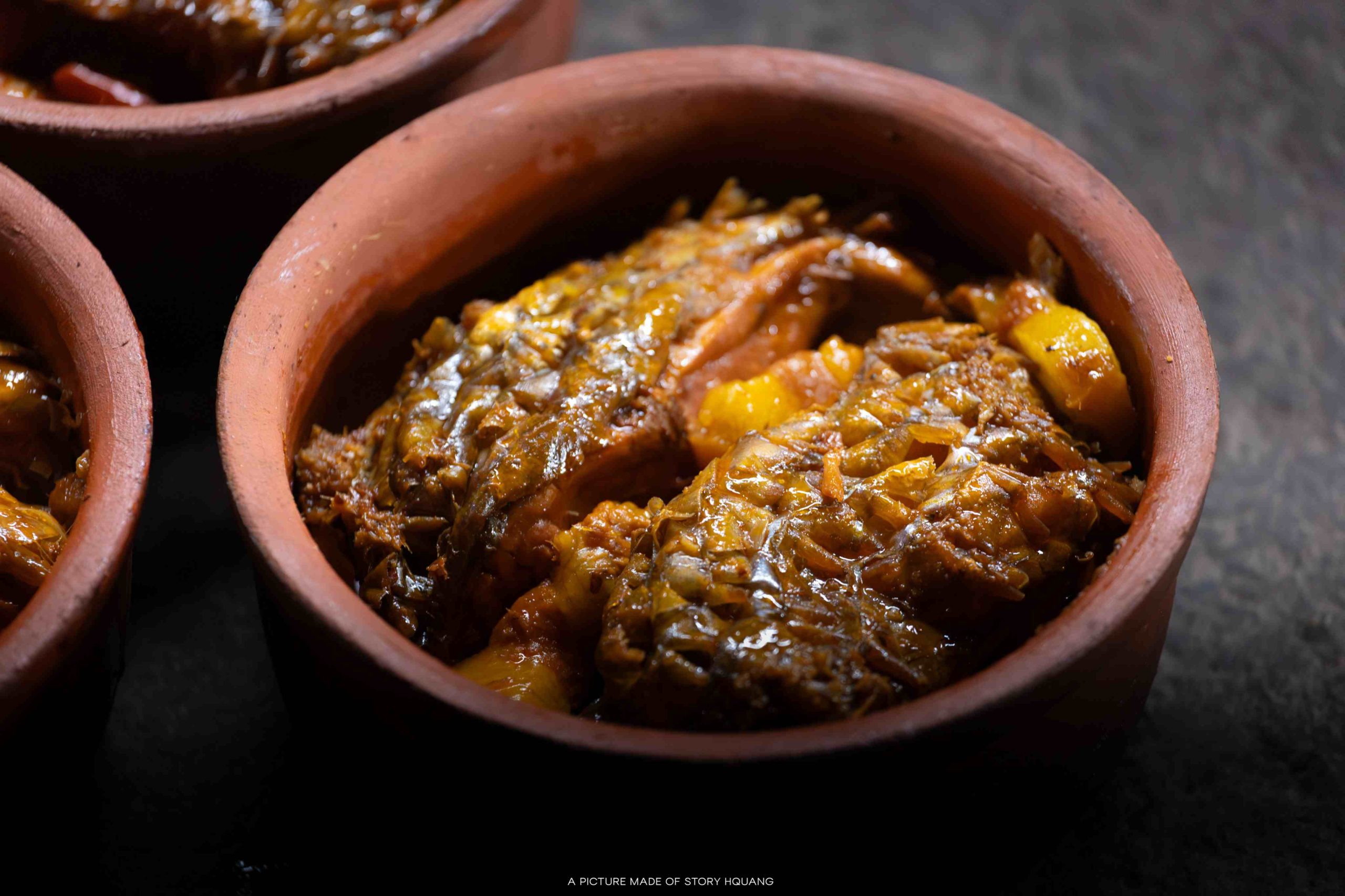 Cá sau khi sơ chế được cắt khúc, ướp gia vị theo công thức riêng của từng nhà. Lớp lót dưới đáy niêu thường là riềng thái lát, có tác dụng tạo hương và chống bén nồi. Ảnh: Nguyễn Hồng Quang