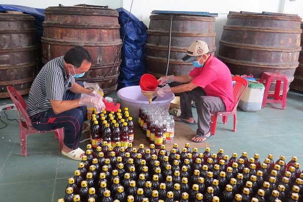 | Ông Phạm Văn Cảnh, chủ cơ sở chế biến nước mắm Tân Lập, chia sẻ trước đây người dân Gành Đỏ đi biển đánh được cá, ruốc ăn không hết thì phơi khô hoặc làm mắm cất ăn dần. Từ một số nhà rồi cả làng học cách làm của nhau để chế biến. Cứ như thế truyền từ thế hệ này sang thế hệ khác, làng nghề nước mắm Gành Đỏ được hình thành, phát triển. |