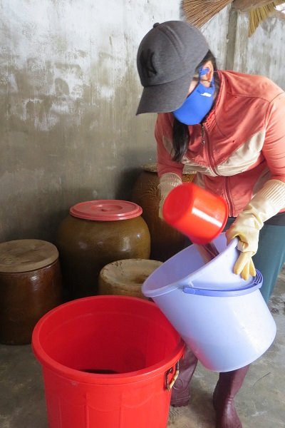 | Nước mắm mới nhỏ lù ra có màu trắng lợt, sau đó dang nắng sẽ chuyển sang màu đỏ, mà đòi hỏi phải dang “đủ nắng” nếu yếu nắng nước mắm có thể “trở mùi”. |