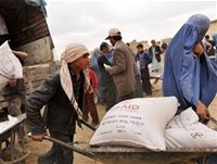 | Người dân Afghanistan nhận lương thực viện trợ của Chương trình Lương thực Thế giới -Ảnh: AFP |