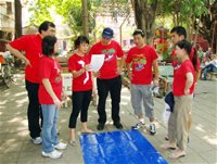 | Khách du lịch nước ngoài chơi trò chơi tập thể tại TPHCM - Ảnh: Hoàng Long |