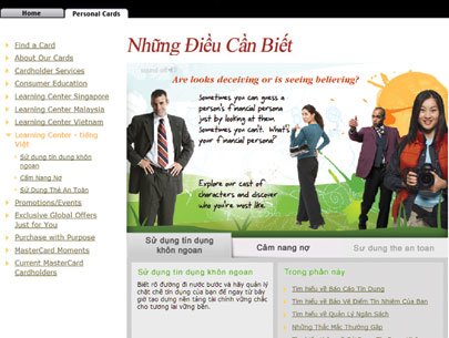 (TBVTSG) - MasterCard vừa giới thiệu trang web hỗ trợ kiến thức trực tuyến bằng tiếng Việt tại www.mastercard.com/sea nhằm hướng dẫn người tiêu dùng trong việc quản lý tài chính cá nhân và tạo cho mình các thói quen tiêu xài hợp lý.