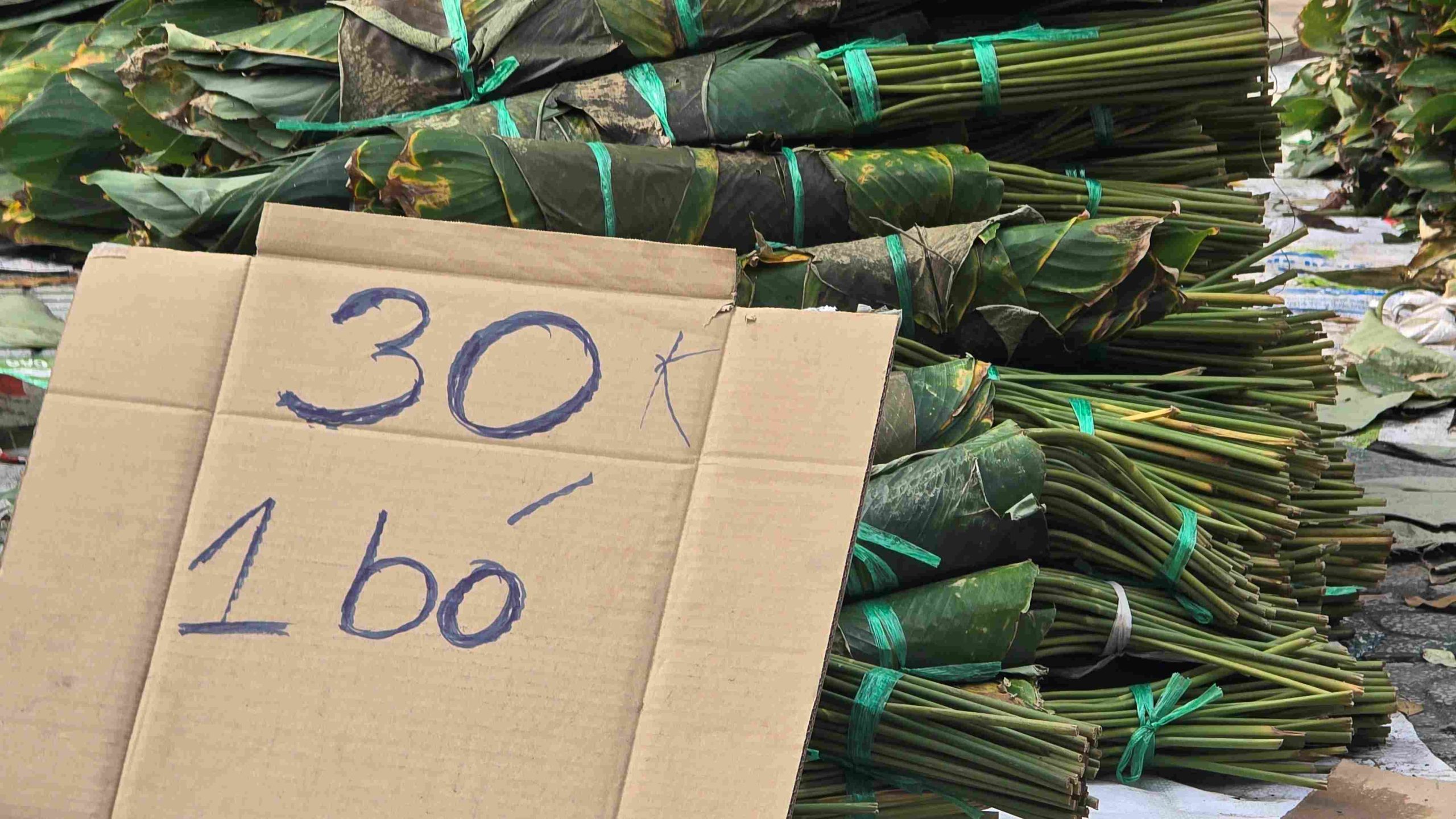 Mỗi bó lá dong có giá 30.000 đồng.