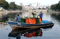 | Nhân viên ngành môi trường đang vớt rác trên rạch Nhiêu Lộc dẫn vào sông Sài Gòn - một nhánh chính của hệ thống sông Đồng Nai - Ảnh: KINH LUÂN |