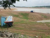 | Lòng hồ thủy điện Trị An thu hẹp dần do tích không đủ nước-Ảnh: Hồng Văn |
