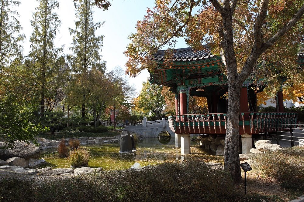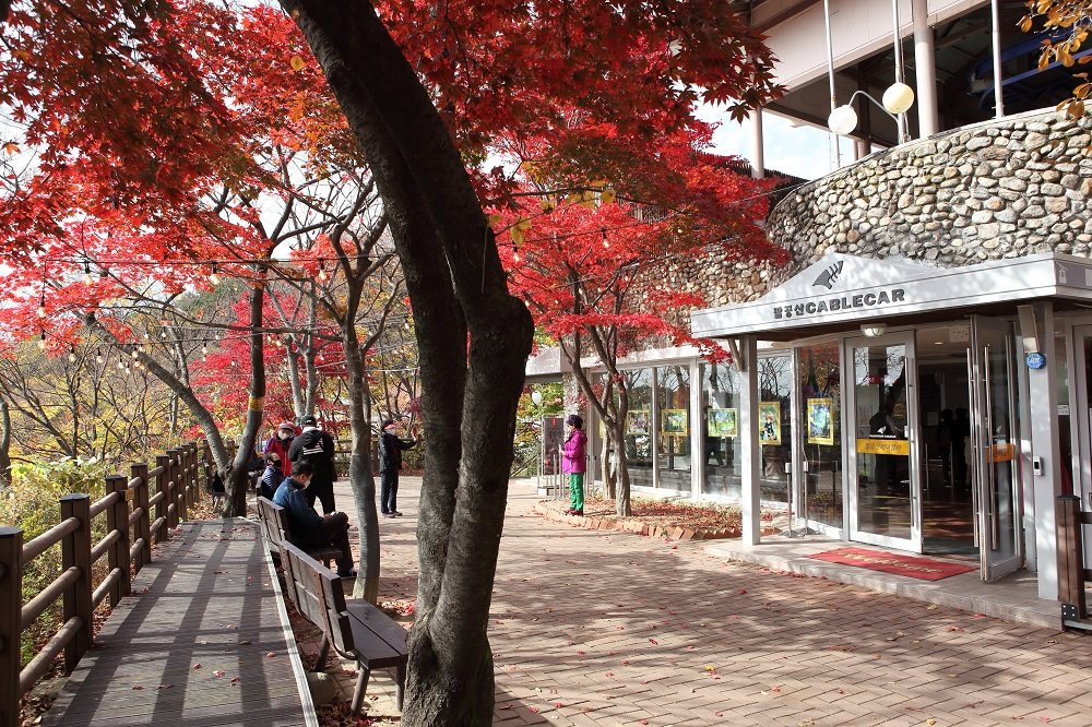 Tại công viên Dalseong cũng có không gian ngắm lá thu vô cùng đẹp. Chỉ cần đi qua cánh cửa lớn được xây dựng theo phong cách truyền thống Hàn Quốc vào đây, mở ra trước mắt chính là bãi cỏ rộng lớn và rất nhiều hàng ghế nghỉ chân. Bạn có thể đi dạo bộ giữa hai hàng cây hoa hòe có tuổi thọ tới 300 năm và những cây ngân hạnh nhuốm sắc vàng; ngắm nhìn những chú hươu, voi, ngựa vằn hay đại bang, đà điểu ở gần đó. Nơi này rất gần với ga Công viên Dalseong tuyến số 3.