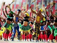 | Lế khai mạc sôi động và nhiều màu sắc chào mừng quả bóng Worldcup lần đầu tiên lăn trên sân cỏ lục địa đen. Ảnh: AP. |