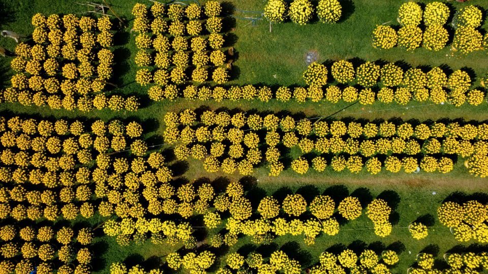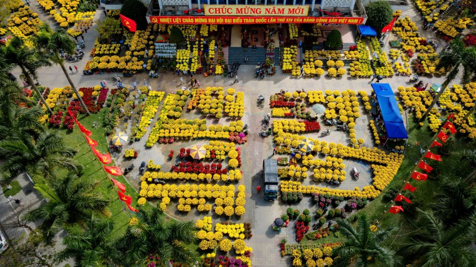 Từ sáng sớm, khi mặt trời còn lấp ló sau màn sương mỏng, những chuyến xe chở hoa đã bắt đầu đổ về thành phố. Từng chậu cúc vàng, từng cành đào phai, những giỏ phong lan rực rỡ hay những chậu vạn thọ nở tròn đầy được sắp xếp ngay ngắn, tạo nên một bức tranh xuân sống động.
