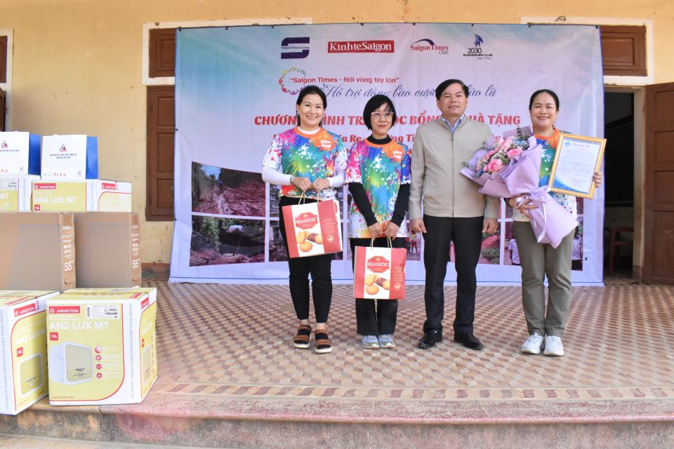 Phát biểu tại buổi lễ, đại diện Ban tổ chức chương trình, bà Trần Thị Thu Thúy cho hay trong những ngày qua, thiên tai đã gây thiệt hại nặng nề cho nhiều vùng miền trên cả nước – từ miền Bắc, miền Trung đến cả một số tỉnh thành phía Nam đã để lại nhiều mất mát, ảnh hưởng nặng nề đến đời sống của bà con và các em học sinh.. Trong những năm qua, Tạp chí Kinh tế Sài Gòn (Saigon Times Group) đã đồng hành cùng cộng đồng qua nhiều chương trình hoạt động, trong đó, có chương trình “Saigon Times – Nối vòng tay lớn” để kêu gọi các doanh nghiệp và mạnh thường quân chung tay hỗ trợ đồng bào vượt qua thiên tai, hoạn nạn.
