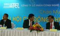 Ban lãnh đạo SaigonTel tại buổi họp Đại hội đồng cổ đông thường niên -Ảnh: Quốc Hùng