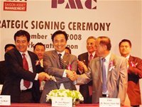 | Ông Louis Nguyễn (giữa), Chủ tịch HĐQT kiêm TGĐ của SAM ký hợp tác chiến lược với đại diện PMC - Ảnh: Quốc Hùng |